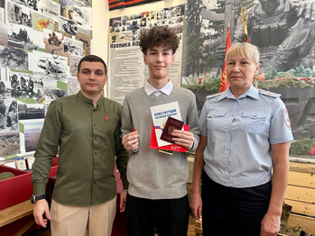 Главный документ гражданина РФ ребятам вручили начальник отделения по вопросам миграции МО МВД России «Камышловский» Галина Боровских и председатель Совета местного отделения Движения Первых Иван Гежа.