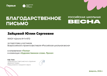 Поздравляем победителей Всероссийского проекта-фестиваля "Российская школьная весна"